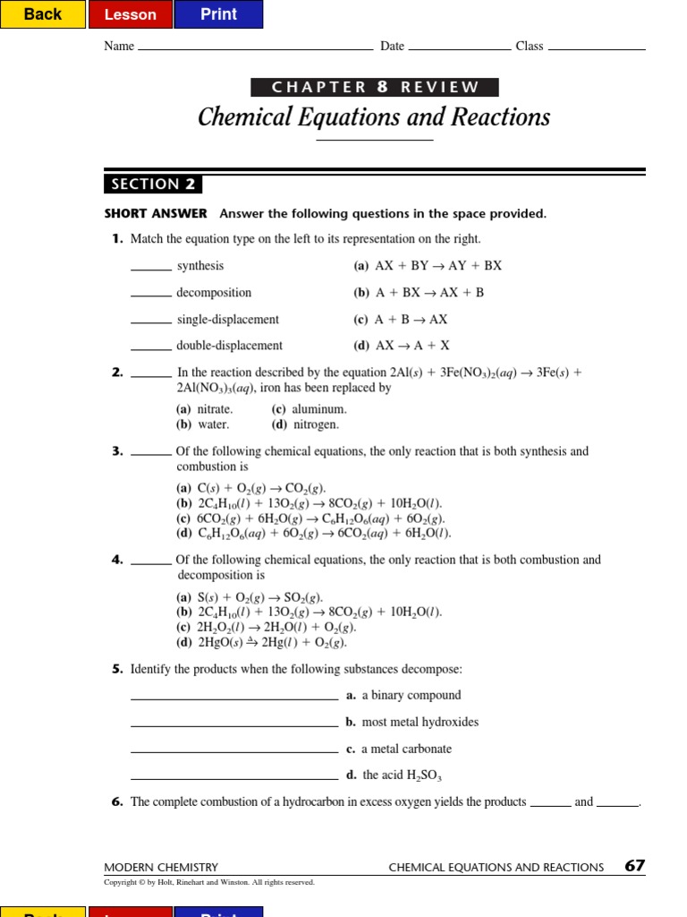Modern Chemistry Holt Rinehart And Winston Worksheet Answers