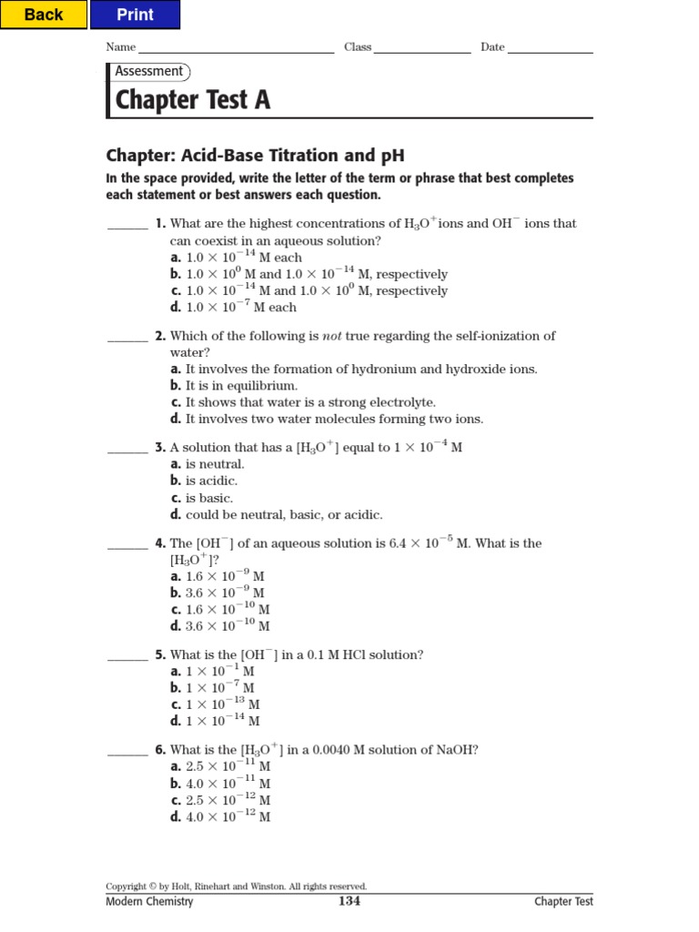 Modern chemistry holt rinehart and winston worksheet answers. Match description on the right to the correct crystal type on the left. Table 6on page 485 of the text lists several amphoteric species but only one other than water is neutral. Holt Mcdougal Modern Chemistry Author.